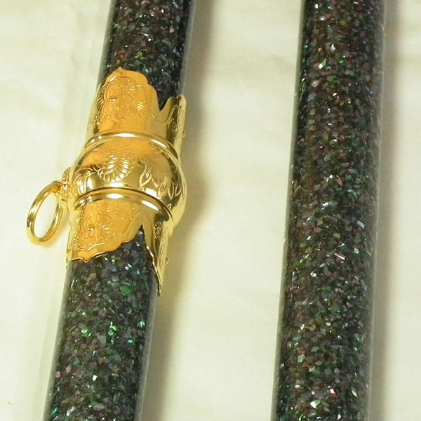 最高級青貝入塗棒(彫刻入金色金具付):高級刺繍旗に使用する千段巻