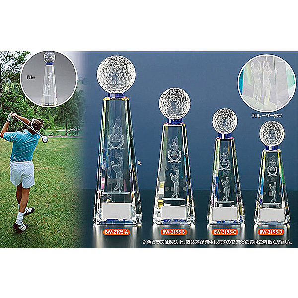BW-2195 ゴルフ用クリスタル ゴルフコンペの記念品、景品には、ガラス製の高級なゴルフ用のクリスタルトロフィー