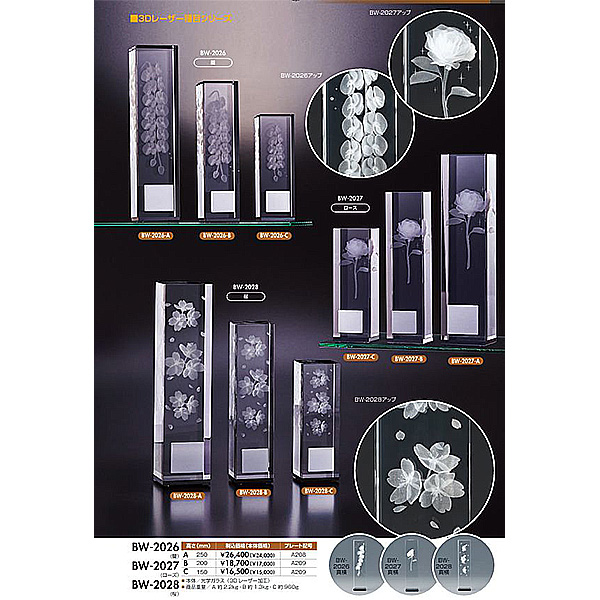 BW-2027 (ローズ) クリスタルブロンズ 高級感あるガラス製 クリスタルトロフィー[BW-2027]